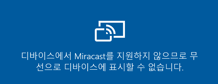 위와 같은 화면이 뜬다면, 해당 기능을 제공하지 못하는 컴퓨터라는 뜻입니다. 이처럼 본인 컴퓨터가 기능을 제공하는 지는 연결 앱을 켜보면 알 수 있습니다. 아마 노트북을 사용하신다면 거의 뜨실텐데요, 데스크탑은 지원을 안하는 경우가 있더라고요.